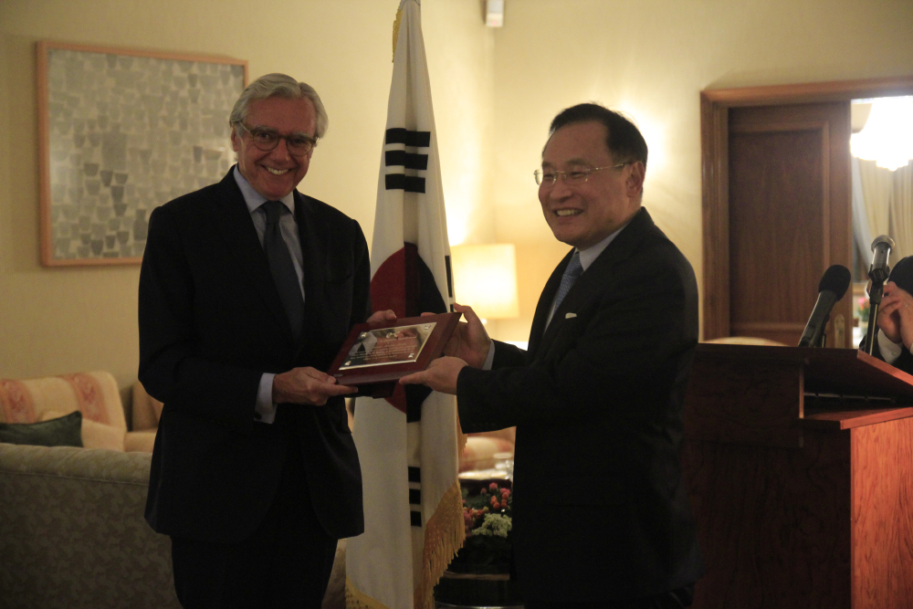 En su discurso de agradecimiento, el Embajador Chun, resaltó el hecho de que el año pasado el intercambio entre Corea y España alcanzó los 5 mil millones de euros, recuperando el nivel anterior a la crisis económica mundial de 2008. Así mismo, señaló que las inversiones se han diversificado y que se está impulsando la cooperación en nuevos campos como las energías renovables y la industria 4.0.