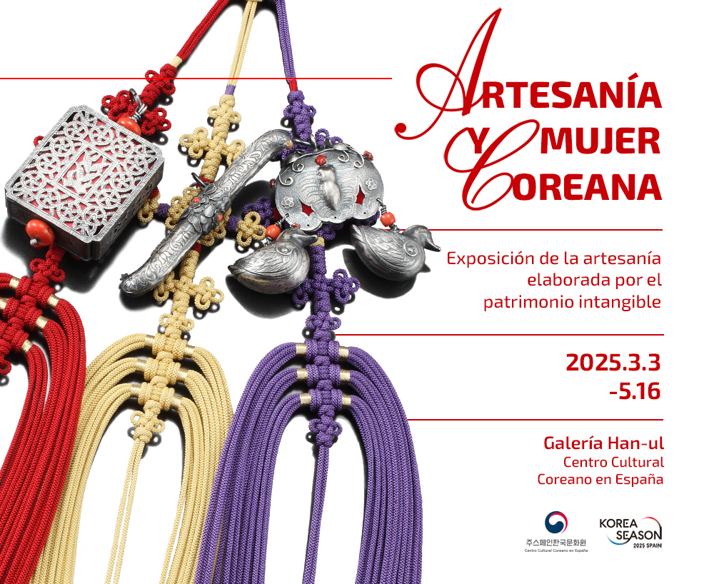 El Centro Cultural Coreano en España tiene el placer de presentar la exposición "Artesanía y Mujer Coreana", que estará abierta al público hasta el 16 de mayo de 2025. Esta exposición temporal celebra la relación entre las mujeres coreanas y la artesanía, con especial énfasis en la dinastía Joseon (1392-1897). En ella, se destacan réplicas de piezas del Patrimonio Cultural Inmaterial de Corea, que reflejan no solo la destreza y creatividad de las mujeres de la época, sino también la relevancia cultural de sus creaciones en la vida cotidiana de Corea tradicional. La exposición rinde homenaje a la artesanía del gyubang, un concepto profundamente arraigado en la cultura coreana.